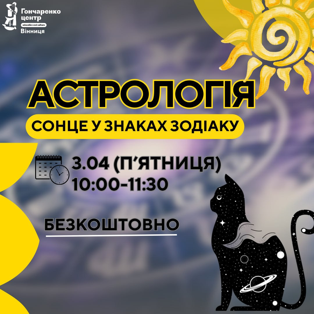 Запрошуємо на зустріч, присвячену ролі Сонця в знаках зодіаку та його впливу на особистість і життєву енергію.