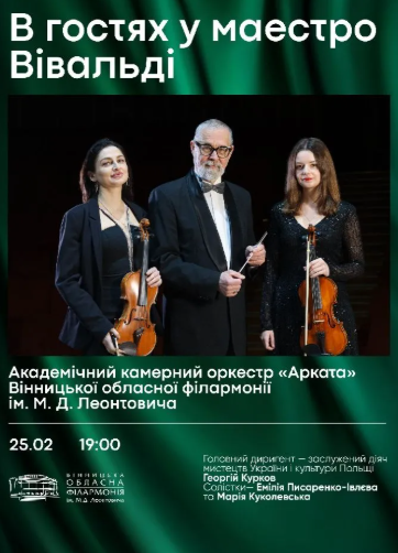 Приходьте на концерті "В гостях у маестро Вівальді" відчути вічну красу музики, яка не старіє з часом, натхнення, яке живе в кожній ноті, і гармонію, здатну торкнутися серця назавжди!