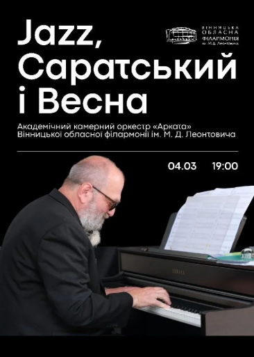 Зустріти весну у ритмі джазу запрошує Академічний камерний оркестр "Арката" Вінницької обласної філармонії ім. Леонтовича та гість зі столиці - композитор та піаніст Олександр Саратський.