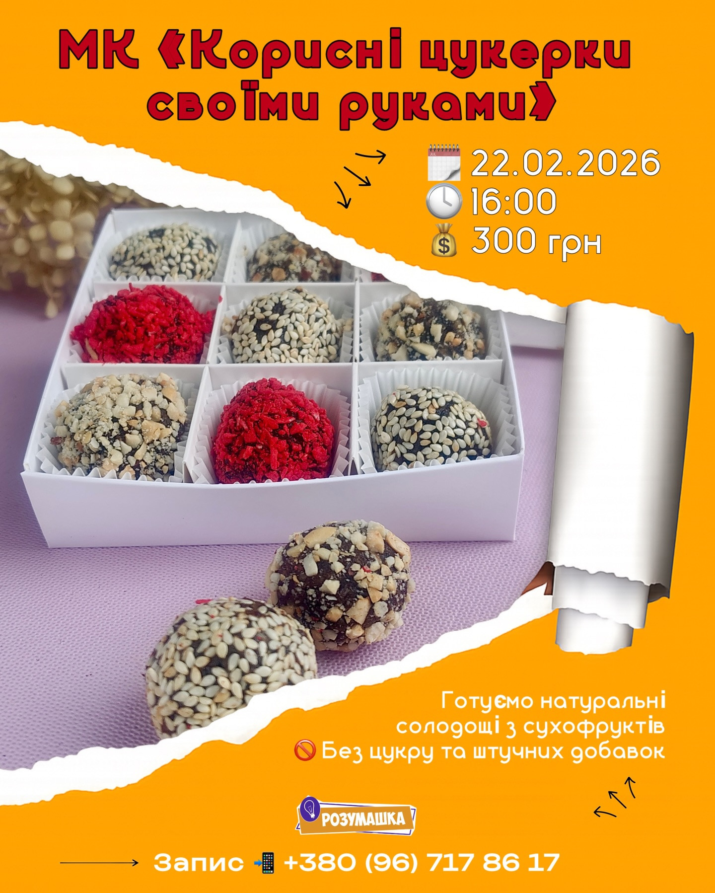 - власноруч сформують 12 корисних цукерок;