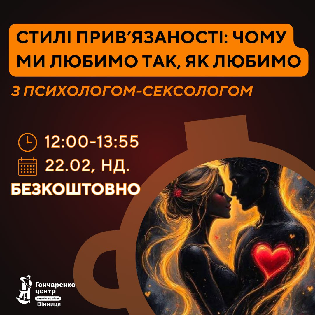 Тренінг "Стилі прив'язаності: чому ми любимо так, як любимо" у місті Вінниця