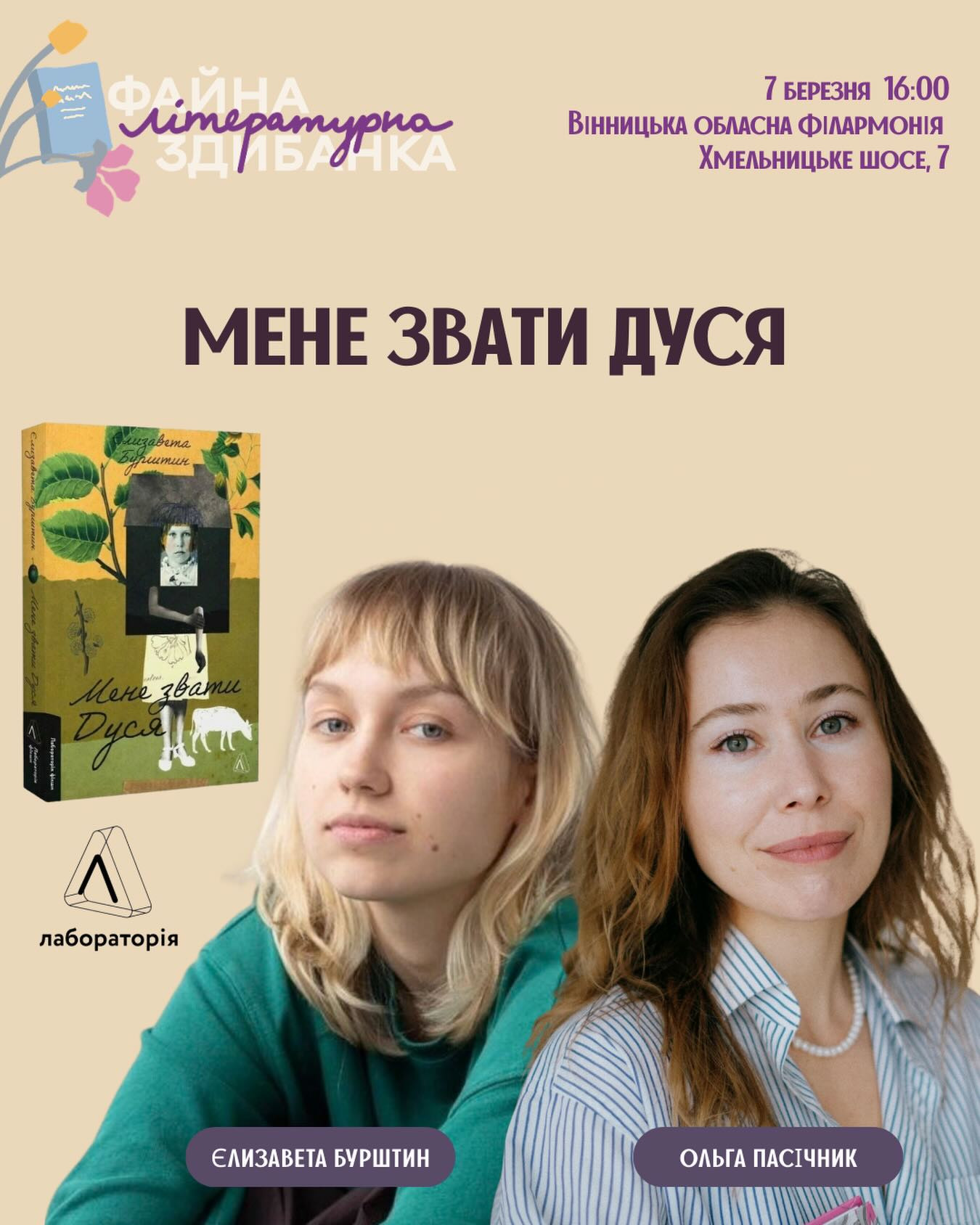 Запрошуємо вас на презентацію роману "Мене звати Дуся" Єлизавети Бурштин - глибокої й атмосферної історії про пам’ять, любов і прийняття.