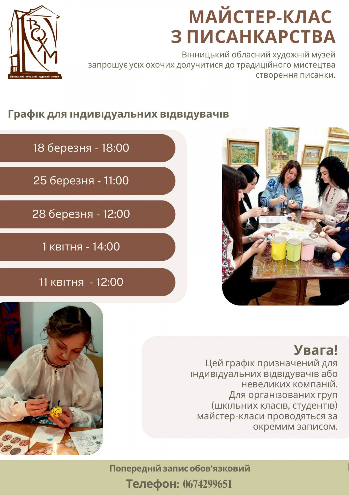 Ми підготували окремий графік майстер-класів для індивідуальних відвідувачів або невеликих груп.