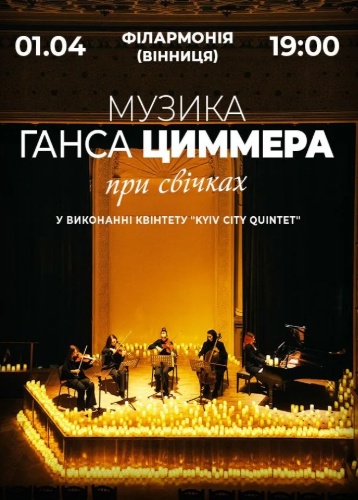 Запрошуємо вас на незабутній концерт, де, у чарівній камерній атмосфері, при світлі сотень свічок, прозвучать найкращі мелодії легендарного композитора Ганса Циммера. Відомий своїми епічними саундтреками, Циммер створює музику, яка захоплює та емоційно вражає.