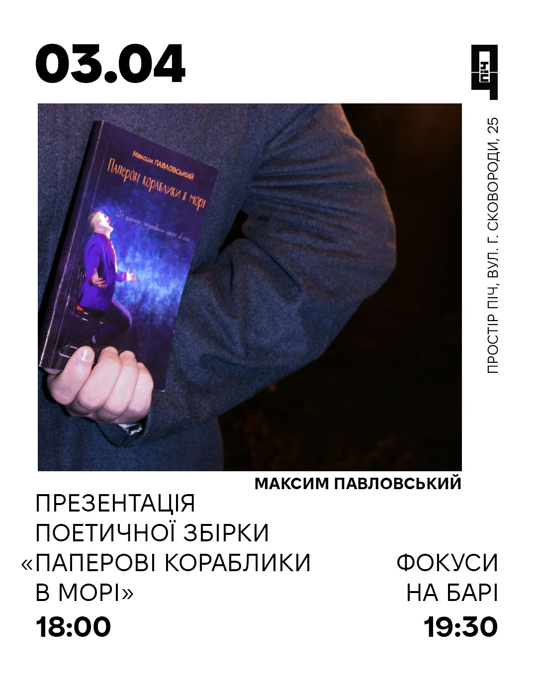 О 18:00 почнемо з презентації його дебютної поетичної збірки - "Паперові кораблики в морі".