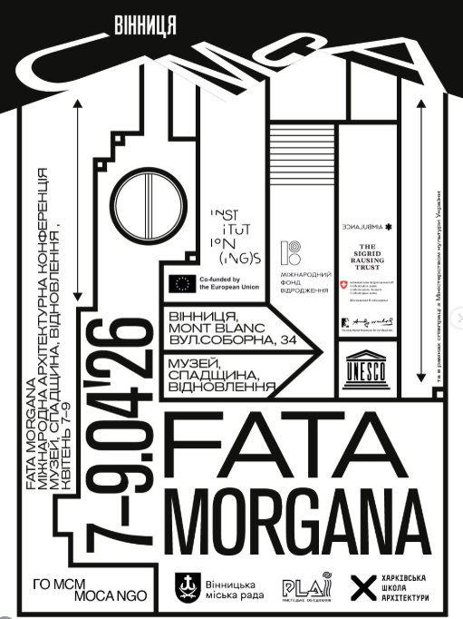 ГО "Музей сучасного мистецтва" разом з ГО "Мистецьке об'єднання "Плай"" і Вінницькою міською радою оголошують міжнародну архітектурну конференцію FATA MORGANA: Музей. Спадщина. Відновлення.