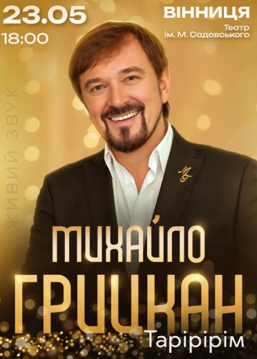 Його хіти обожнюють мільйони: від наймолодшого покоління до поважного віку. 23 травня у Вінниці відбудеться концерт Заслуженого артиста України - Михайла Грицкана.