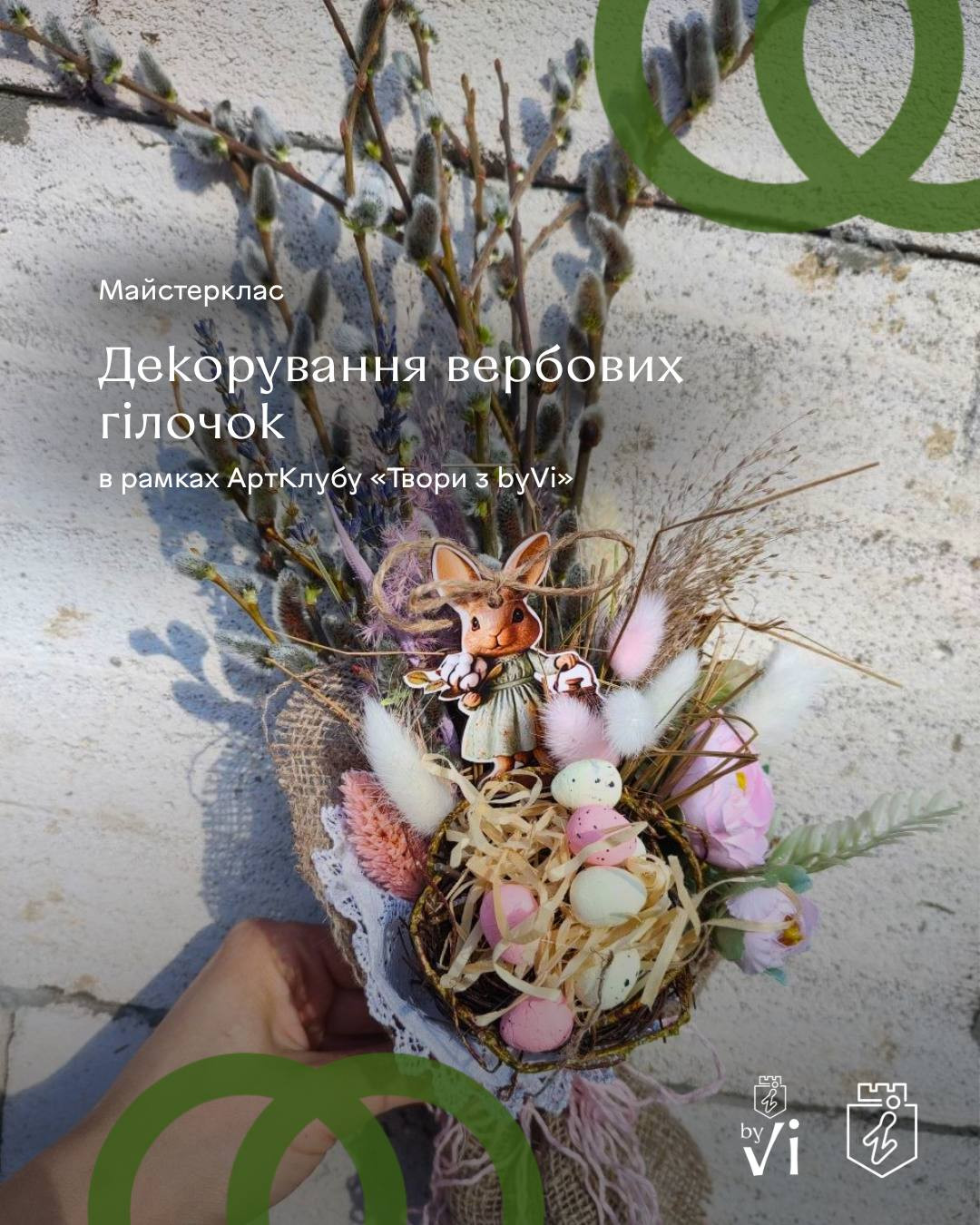 Великдень вже зовсім близько, тож саме час готувати особливий декор, що наповнить дім теплом! Запрошуємо вас на творчу зустріч, де ми будемо створювати вербовий букет та, за бажанням, об'ємну прикрасу для святкового кошика.