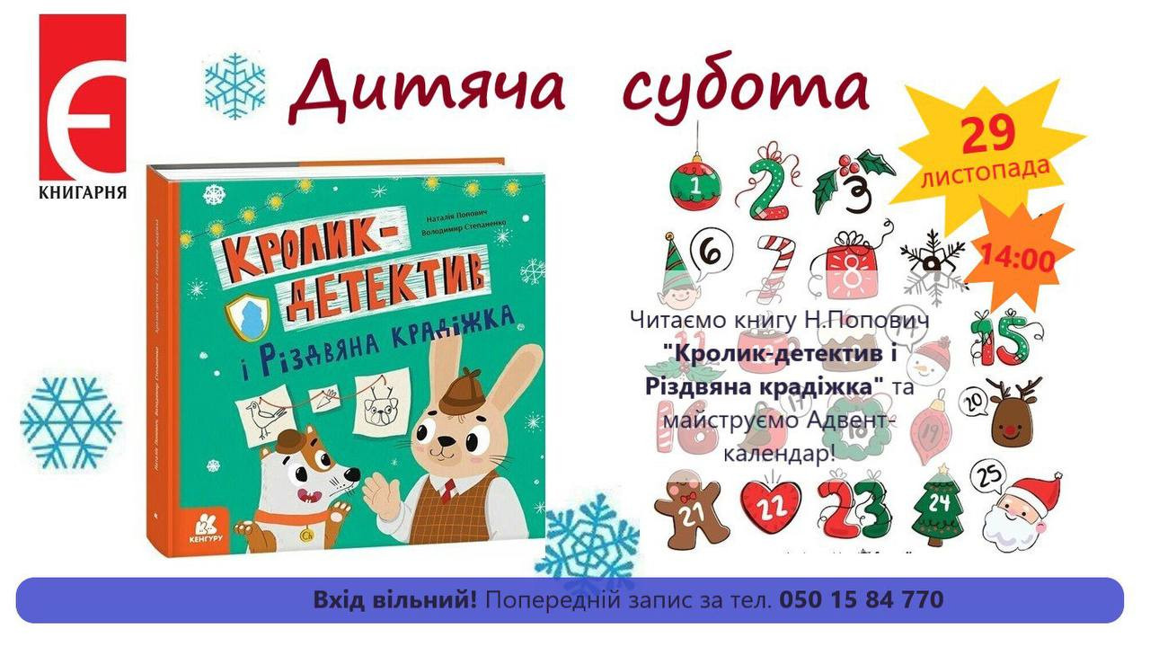 Друзі! Запрошуємо на традиційну Дитячу суботу в Книгарні "Є"!