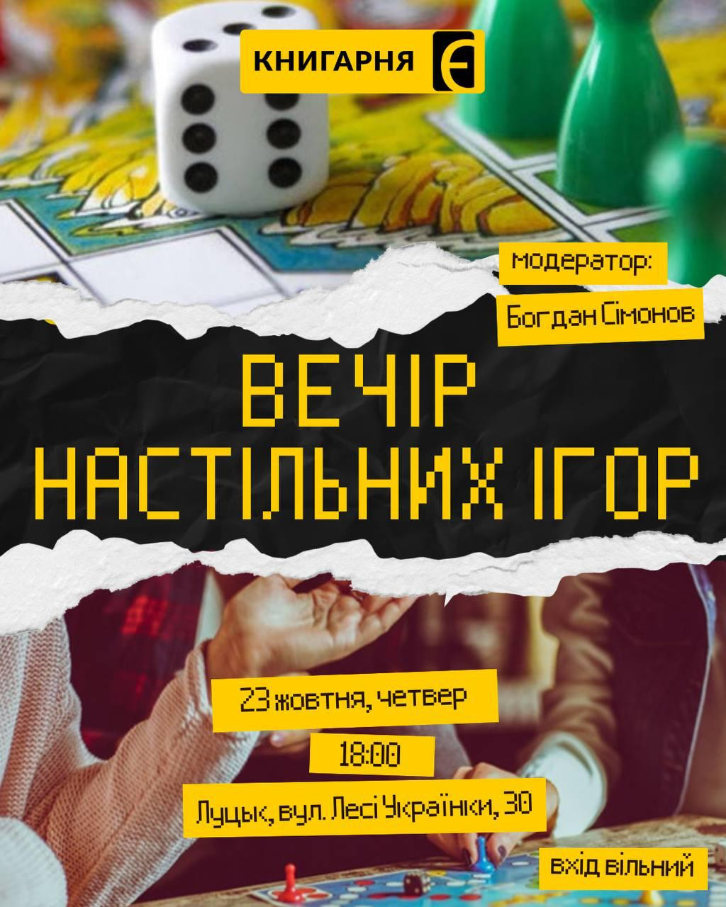 Вечори настільних ігор - грай, читай, спілкуйся!