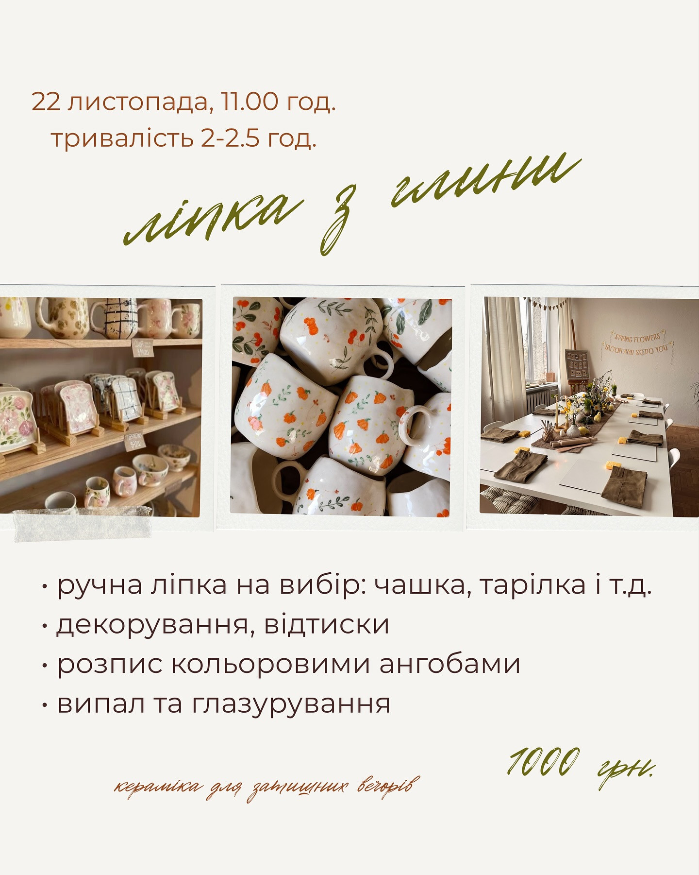Запрошуємо на майстер-клас "Ліпка з глини".