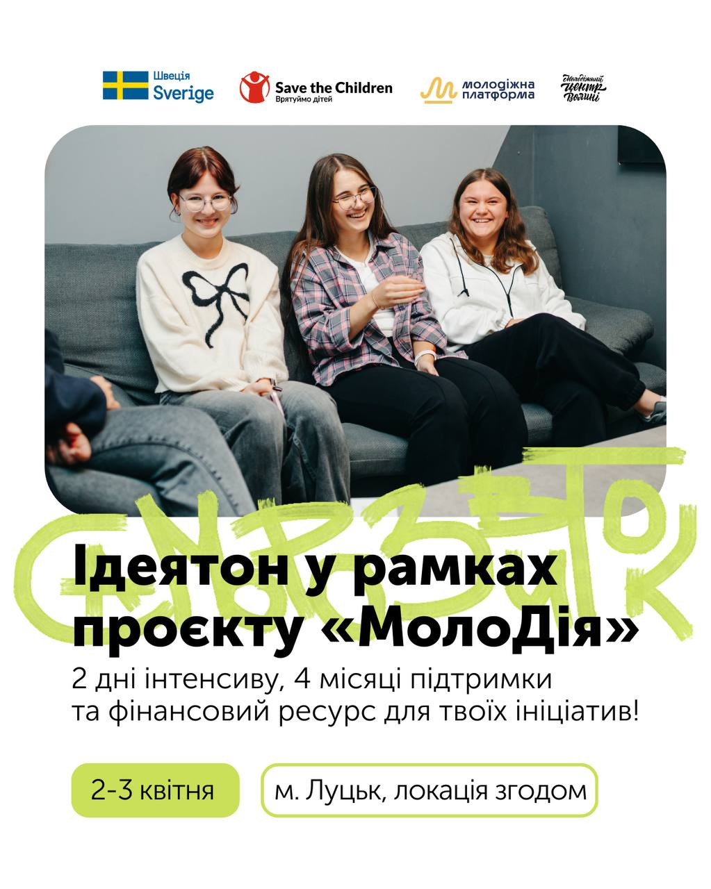 Так от, цей "хтось" — це ти! І ми готові в цьому допомогти. Запрошуємо тебе на Ідеятон у межах проєкту "МолоДія".