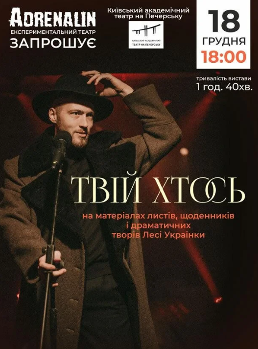 У виставі "Твій хтось" на матеріалах листів, щоденників і драматичних творів Лесі Українки ми відкриваємо її справжню – ексцентричну, сильну, вольову, щасливу у багатьох речах жінку, яка кохала та була коханою.
