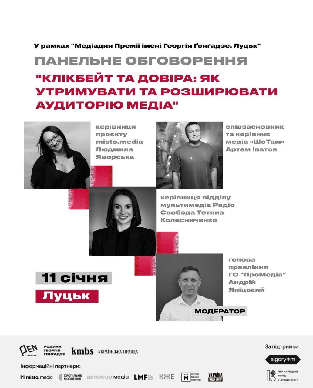 У рамках "Медіадня Премії імені Георгія Ґонґадзе. Луцьк" говоритимемо і про те, як медіа балансують між увагою аудиторії та збереженням довіри.