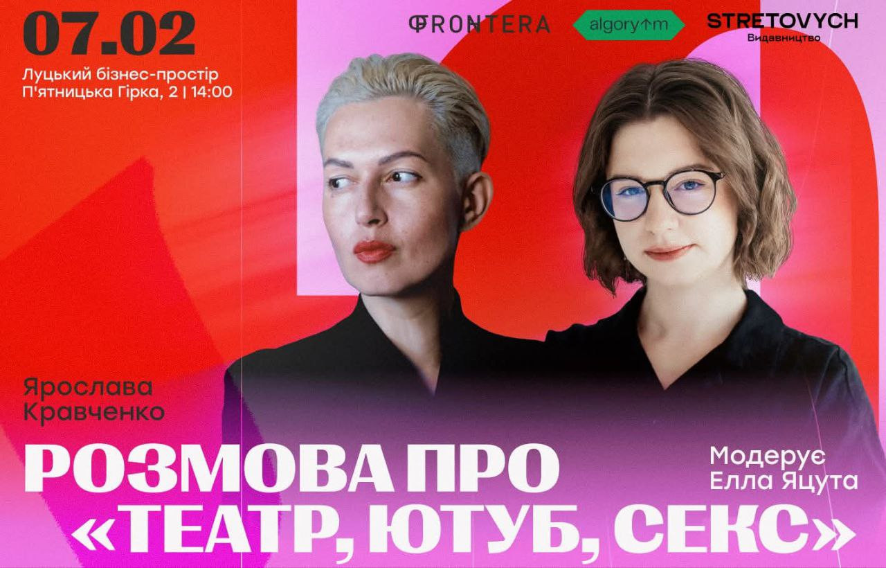 До Луцька приїде Ярослава Кравченко з книгою "Театр. Ютуб. Секс".