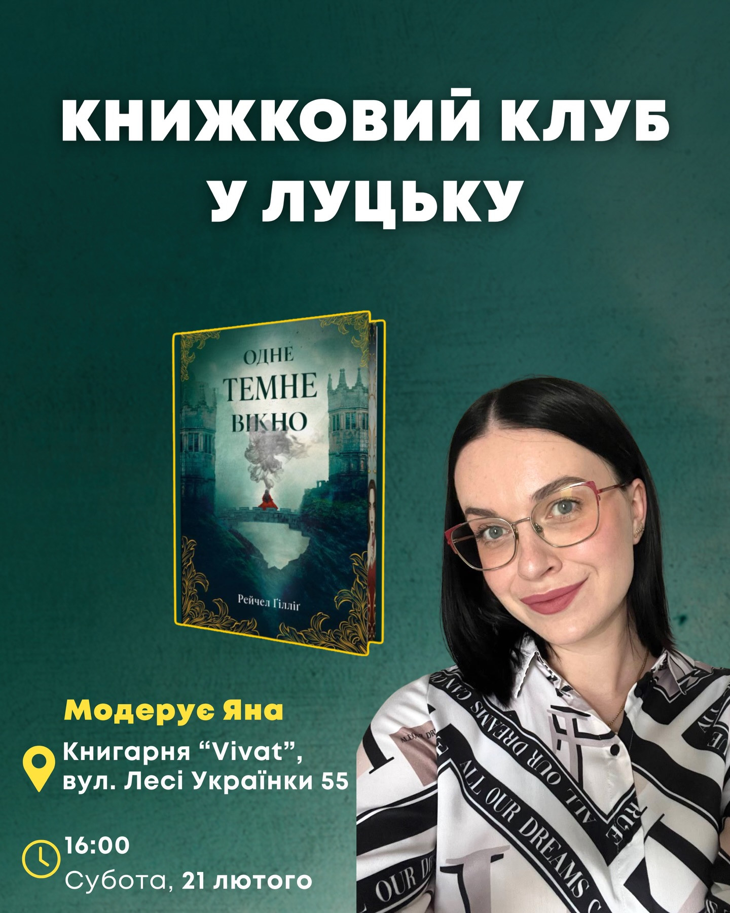 Місце проведення: вул. Лесі Українки, 55 (книгарня "Vivat")