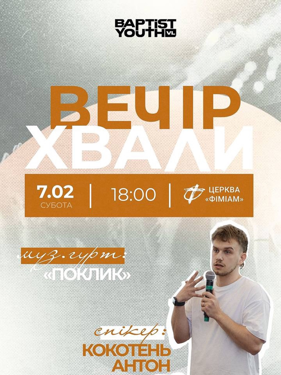 Запрошуємо вас і вашу молодь на Луцький вечір хвали.