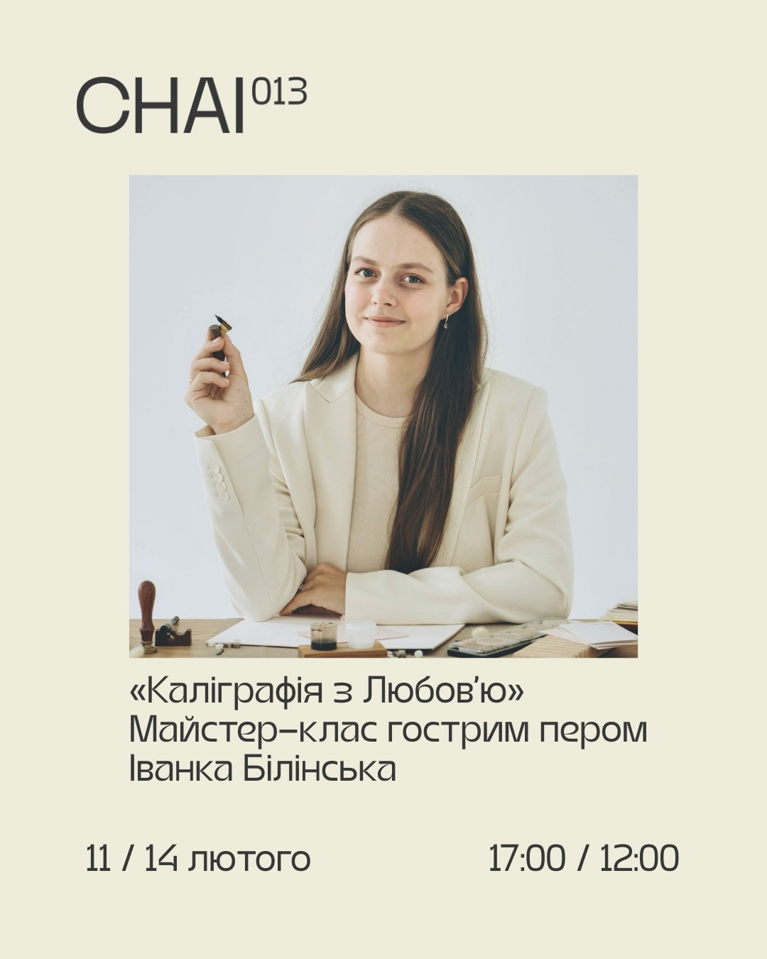 Майстер-клас проводить Іванка Білінська — каліграфка, дизайнерка та авторка блогу perom.ua.