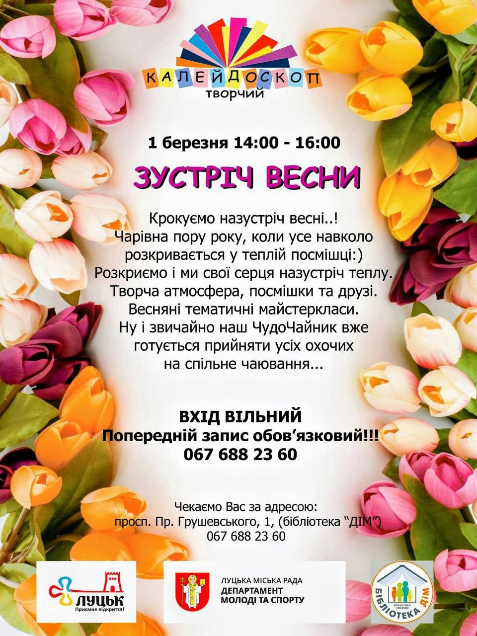 Творчий калейдоскоп спільно з департаментом молоді та спорту запрошує лучан та гостей громади на теплий, творчий і по-справжньому весняний майстерклас!