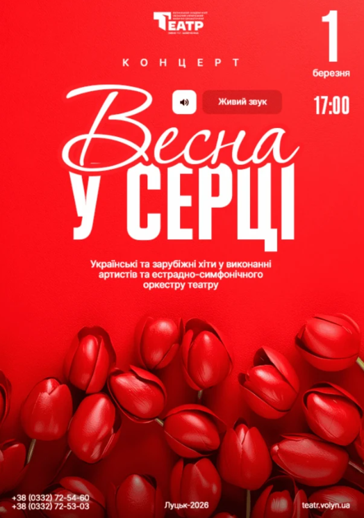 Запрошуємо на концерт "Весна у серці" у виконанні артистів та естрадно-симфонічного оркестру театру.