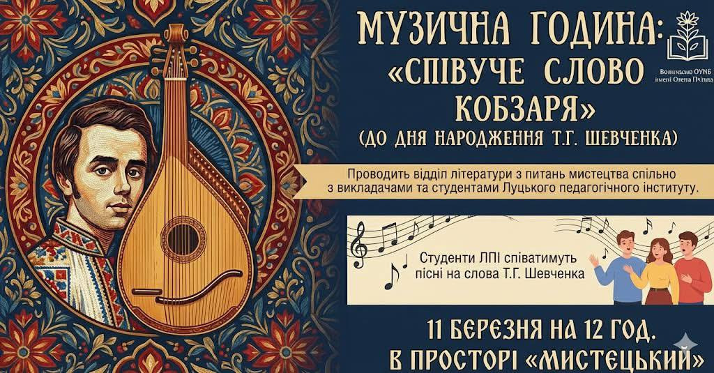 Запрошуємо провести цю годину разом у світі поезії, музики та Шевченкового слова, що надихає покоління.