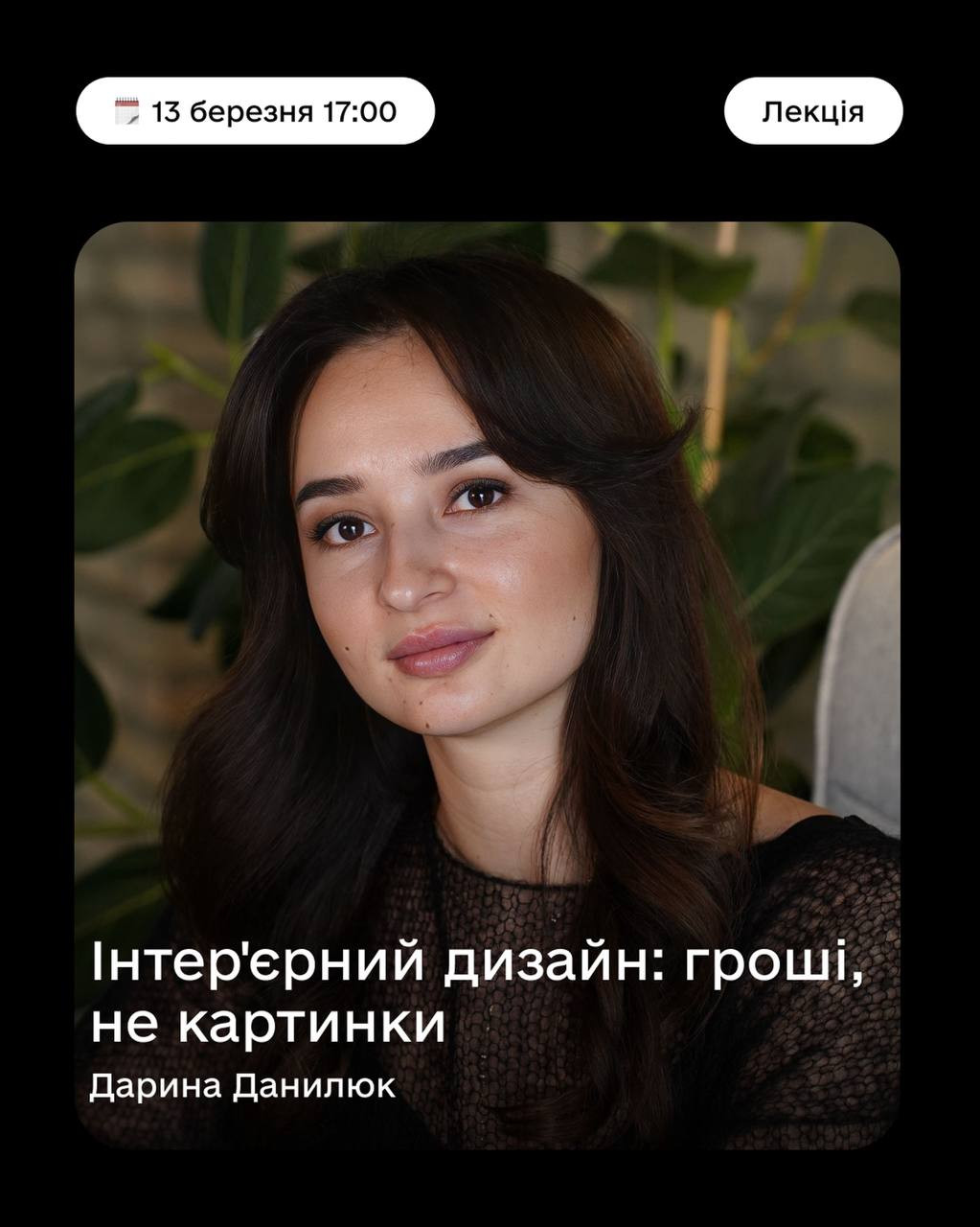 Спікерка: Дарина Данилюк — засновниця Danyliuk Design Interior Studio, дизайнерка інтер’єру з міжнародним досвідом. З 2018 року створює житлові та комерційні простори в Україні, Європі та США.