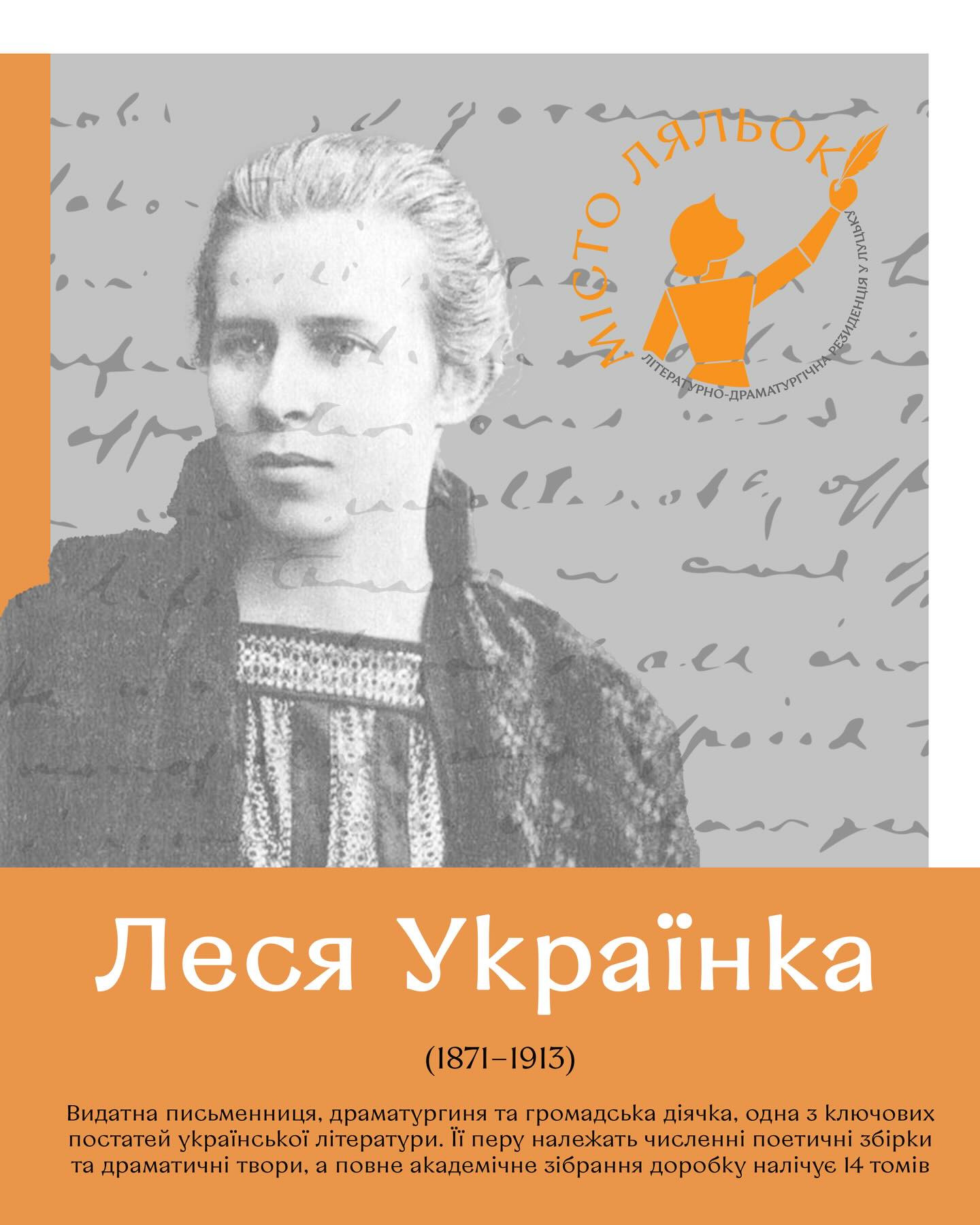 У межах літературно-драматургічної резиденції "Місто ляльок" відбудеться перше читання п’єси "Біля фортеці" Людмили Зборовської, фантазії про останній день життя Лесі Українки.