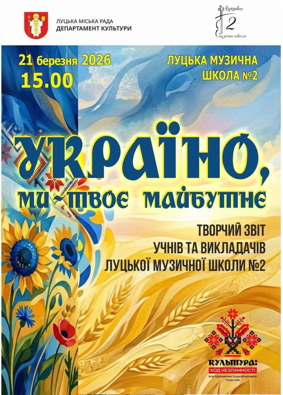 Запрошуємо на творчий звіт Луцької музичної школи №2 "Україно, ми – твоє майбутнє".