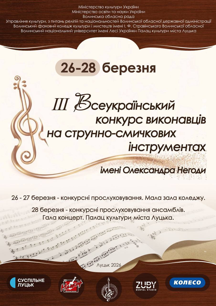 ІІІ Всеукраїнський конкурс виконавців на струнно-смичкових інструментах імені Олександра Негоди у місті Луцьк