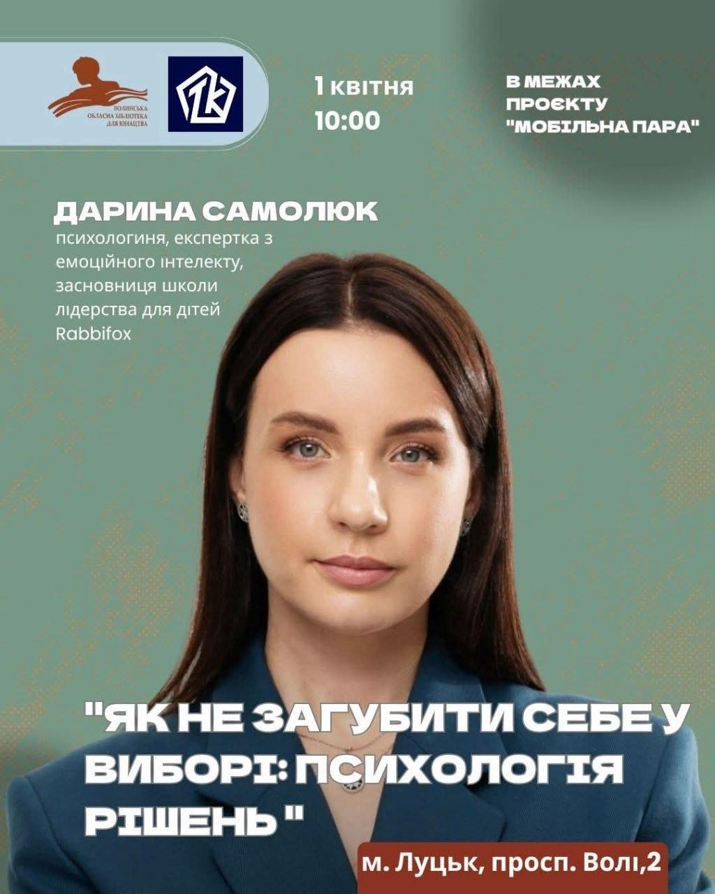 Про це говоритимемо разом із Дариною Самолюк — психологинею, експерткою з емоційного інтелекту, засновницею школи лідерства для дітей Rabbifox.