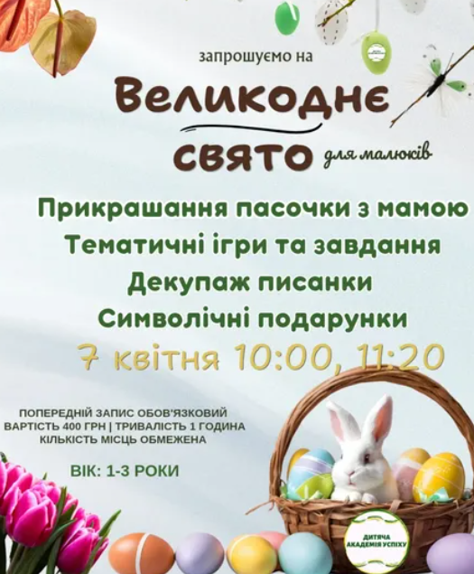 Разом з мамою прикрасимо пасочку, пограємо в цікаві ігри та створимо свою першу писанку.