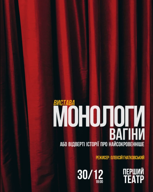 "Монологи вагіни" — це зізнання, гострі злами і життєві історії, що торкаються найпотаємніших сторінок жіночої душі. Вистава, створена за мотивами п'єси Ів Енслер, кидає виклик стереотипам і піднімає питання, які часто залишаються поза увагою суспільства. Кожен монолог — це сповідь, де сміх і сльози, біль і надія переплітаються в єдину тканину людського досвіду. Кожне слово на сцені — це крик і шепіт, що лунають із найглибших куточків жіночої душі. "Монологи вагіни" здобули міжнародне визнання і були оголошені "The New York Times" однією з найважливіших п'єс за останні 25 років. Сміливі теми, про які зазвичай мовчать, але які неодмінно слід обговорити, прозвучали у 150-ти країнах та без перебільшення змінили життя глядачів по всьому світу.
