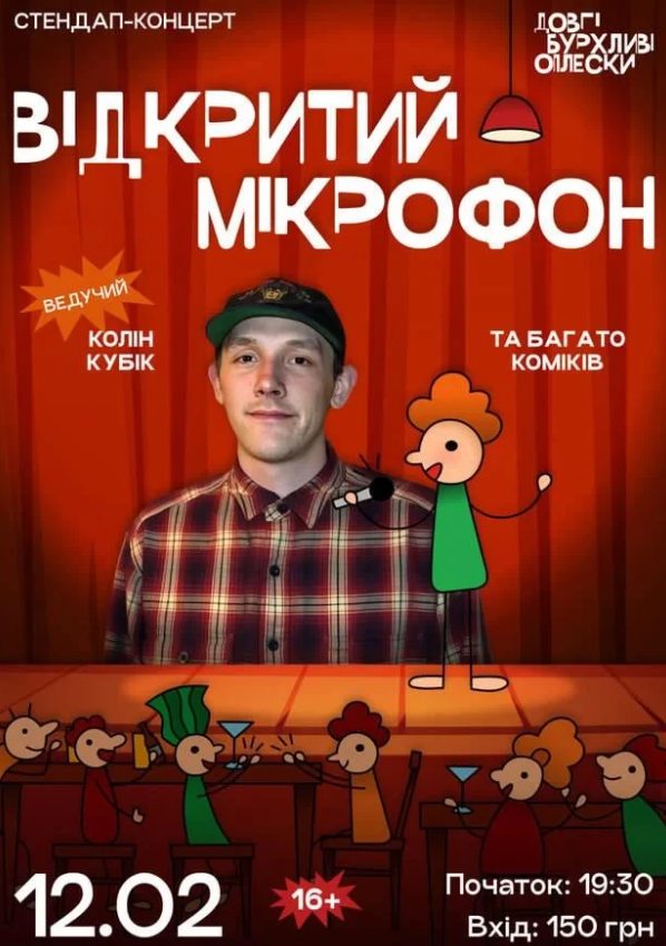 Відкритий мікрофон — це шоу, де коміки тестують нові жарти, а ви, глядачі, допомагаєте зрозуміти, що смішне. Ваш сміх і оплески вирішують долю кожного жарту.