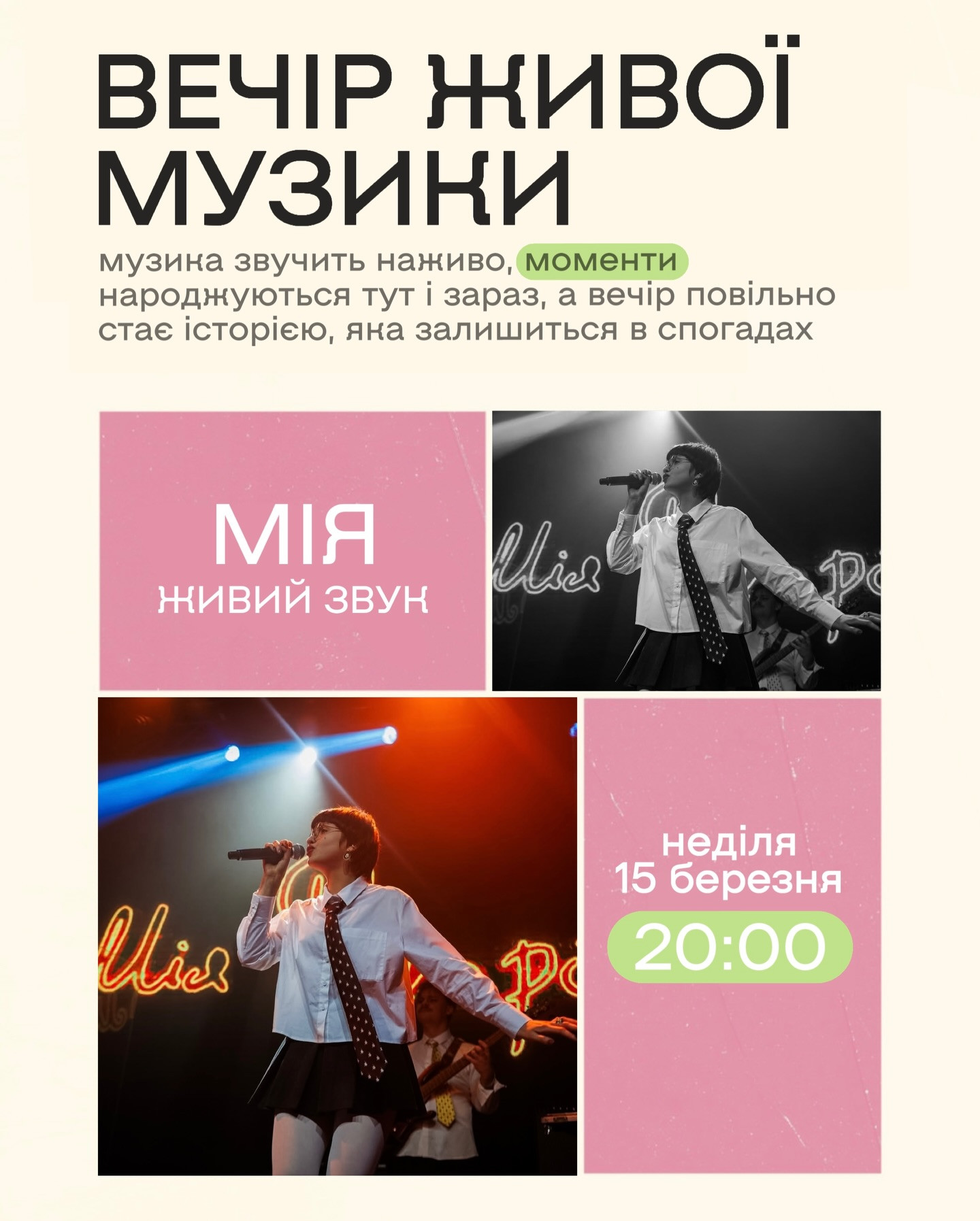 Запрошуємо Вас на музичний виступ чарівної Мії. Нехай в цей вечір зупиниться все навколо, а ти відпочинеш. Лише ти, музика та твої особливі моменти.