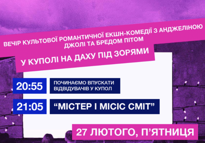 Вечір культової романтичної екшн-стрічки з Анджеліною Джолі та Бредом Пітом "Містер і Місіс Сміт" у місті Львів