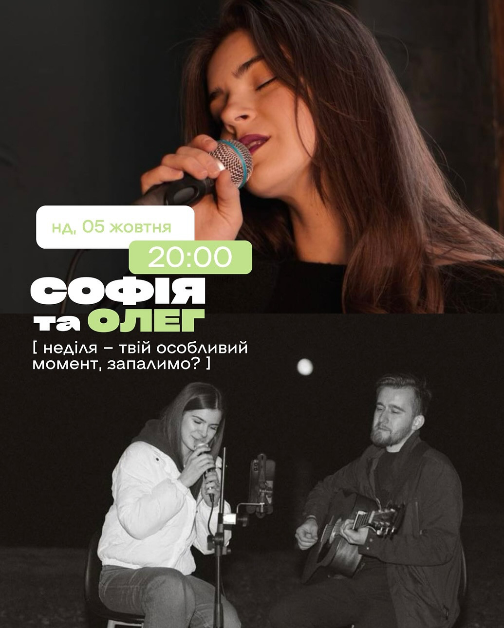 Запрошуємо Вас на вечір живої музики разом неймовірними Олегом та Софією. Вони зроблять цей вечір незабутнім.