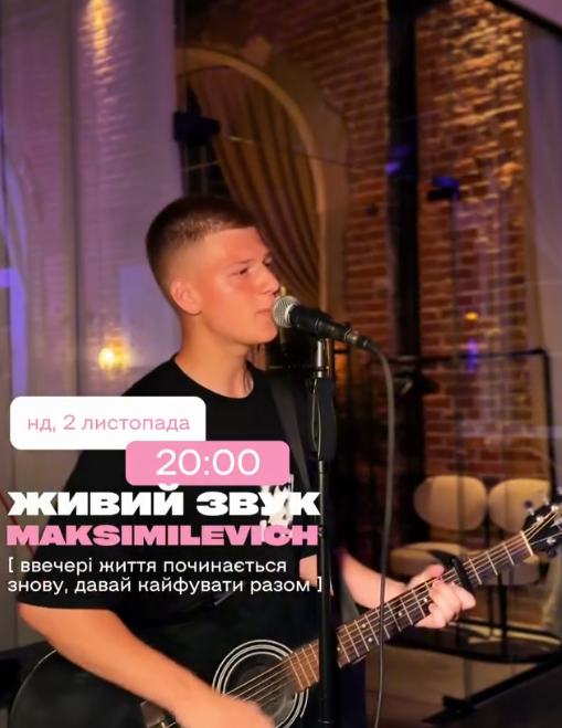 Запрошуємо Вас на осінній вечір живої музики разом з Maksimilevich.