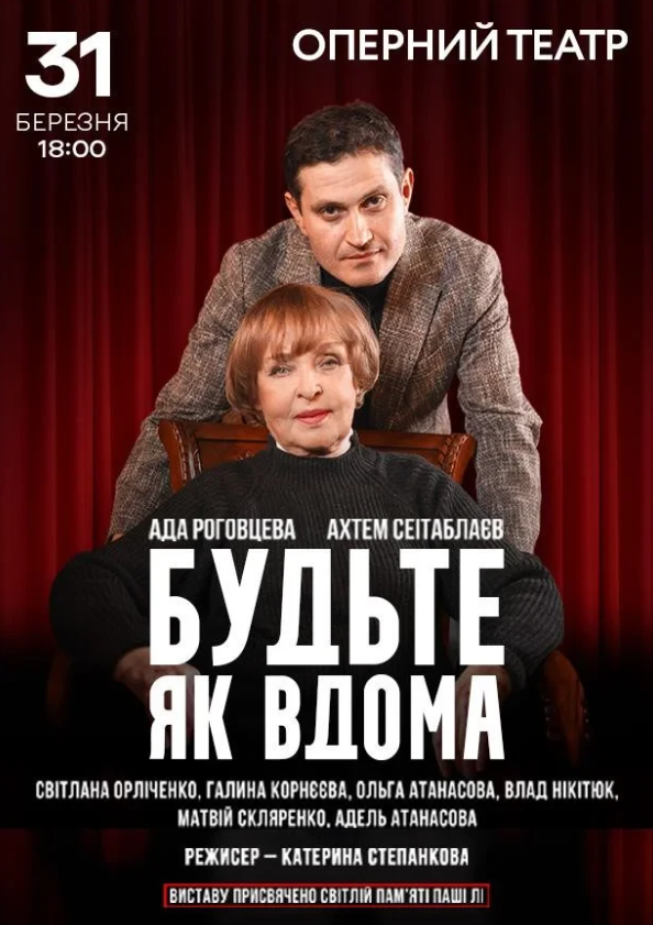 "Будьте, як вдома" – це комедія за мотивами п'єси Жана-Марі Шевре "Squat". Це весела і щемлива історія про те, що любов долає всі перепони, а безкорисна добра справа може змінити світ, зробити його трохи кращим.