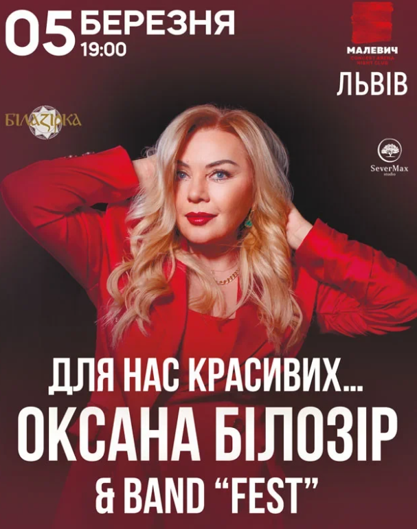 Блискуча Оксана Білозір та band "FEST" пропонують вашій увазі програму "М'ятне літо". Яскрава зірка, яка невтомно сяє на нашому музичному Олімпі, запрошує вас на неповторний концерт. Розділіть цей вечір з легендарною співачкою. Відчуйте гармонію та спокій, адже творчість Оксани Білозір налаштовує на позитив.