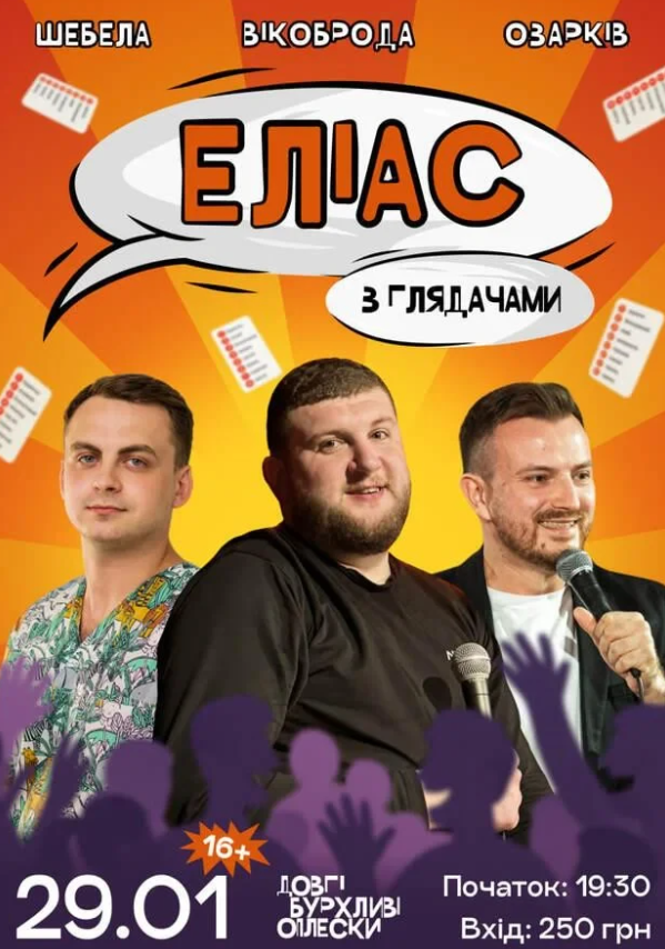 Улюблена гра в "Оплесках", де головні учасники – це не лише коміки, а й ви, наші глядачі. В "Еліасі з глядачами" ви не просто дивитесь шоу – ви стаєте його частиною.