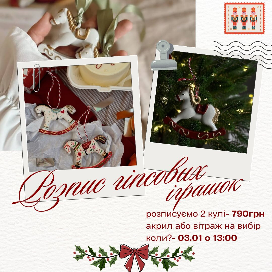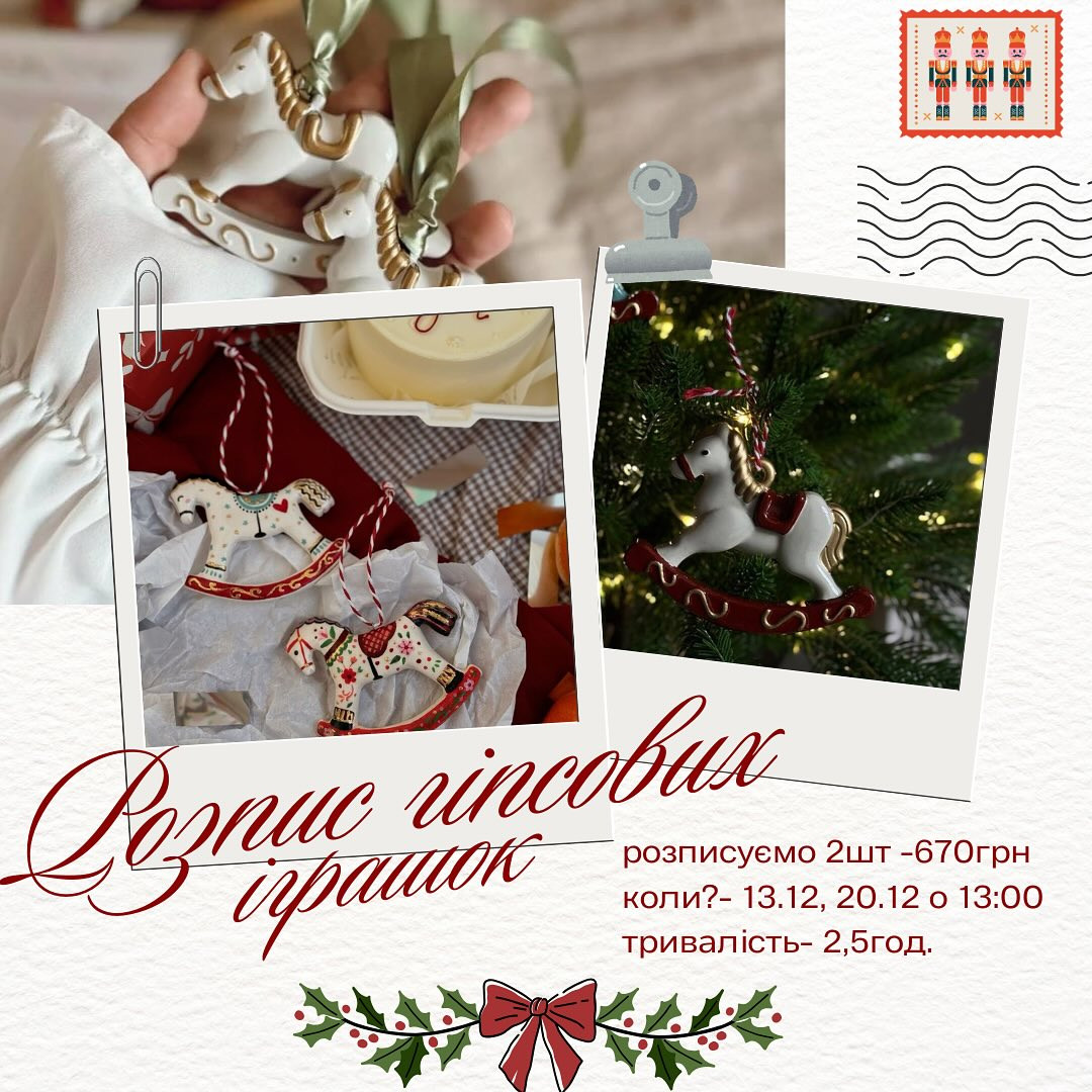 Творча майстерня Марель запрошує вас поринути в атмосферу різдвяного тепла та любові й створити своє особливе свято разом з нами. На майстер-класі розпишемо 2 гіпсові іграшки.