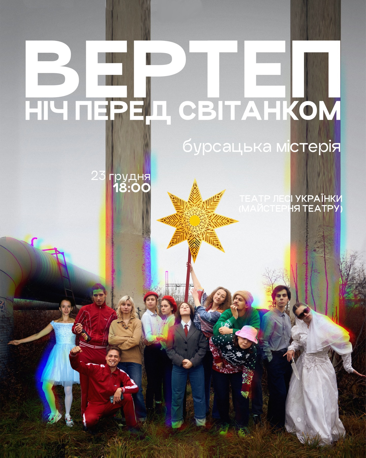 "Вертеп. Ніч перед світанком" на основі текстів Сокиринського вертепу (найдавнішого із відомих в Україні вертепів), написаного бурсаками Києво-Могилянської академії. Адже у всі часи студенти вірили в Чудо і, звісно ж, хотіли щось їсти.