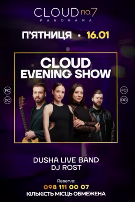 Пориньте у атмосферу музики, драйву і святкового настрою який створять Dj Rost та Dusha Live Band. Насолоджуйтеся атмосферою неймовірних моментів. Тут народжуються спогади, тут святкують найважливіші моменти!