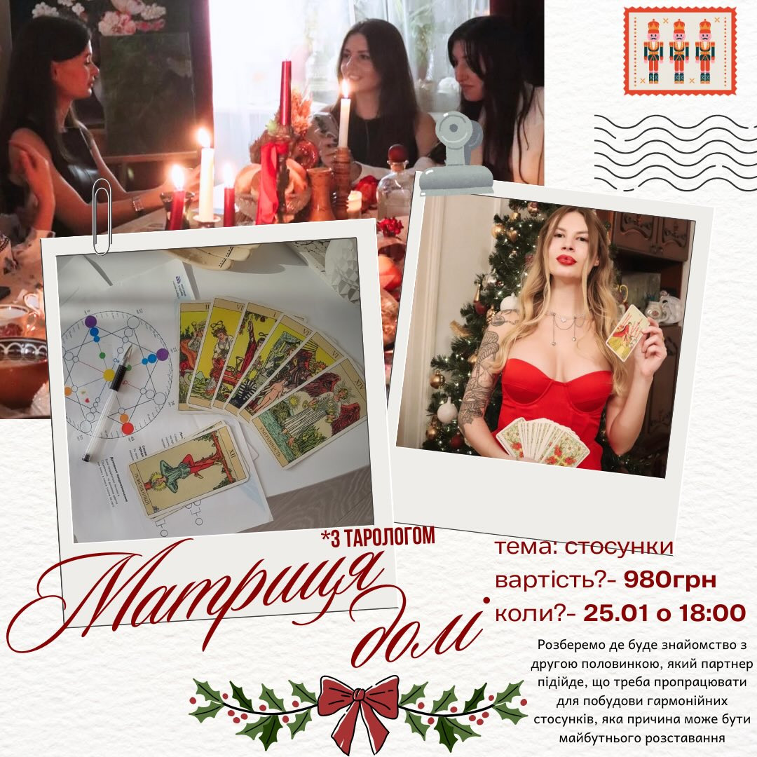 Запрошуємо на майстер-клас "Матриця долі" з тарологом. Розберемо де буде знайомство з другою половинкою, який партнер підійде, що треба пропрацювати для побудови гармонійних стосунків, яка причина може бути майбутнього розтавання.