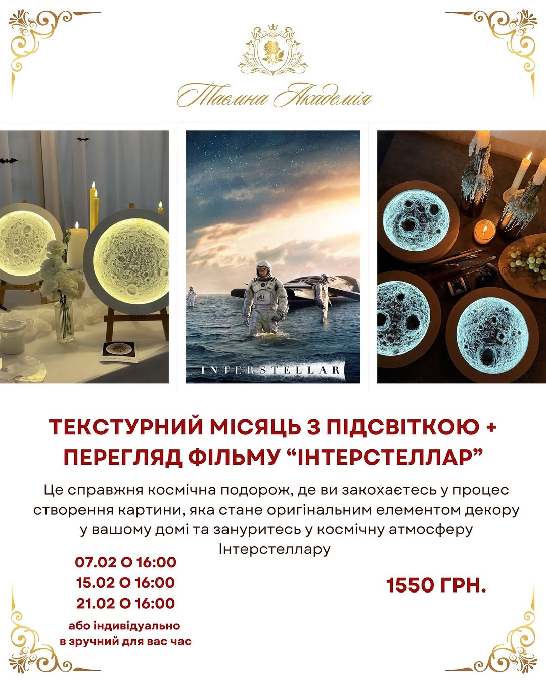Майстер-клас "Текстурний місяць з підсвіткою" та перегляд фільму "Інтерстеллар" у місті Львів