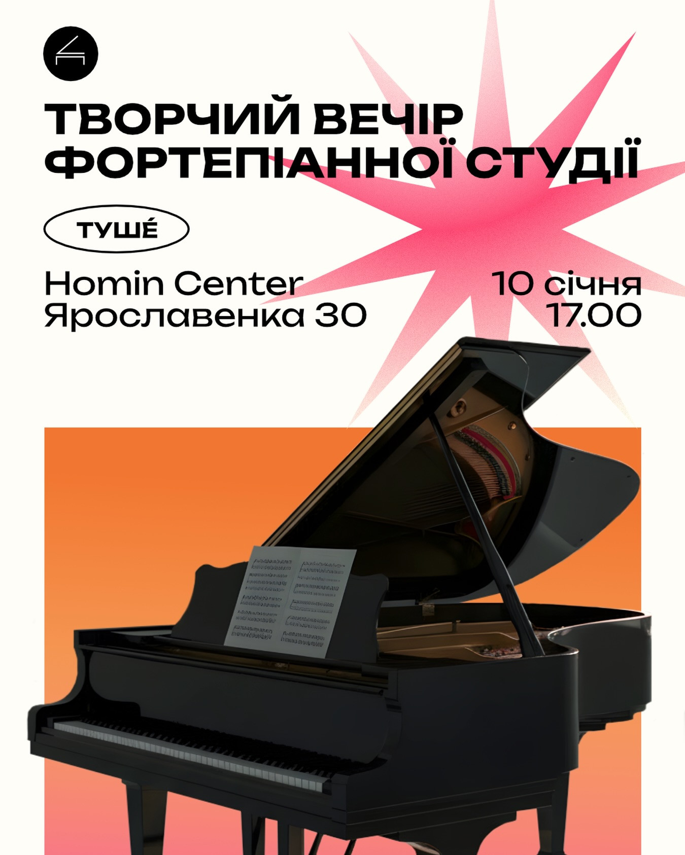 Творчий вечір фортепіанної студії ТУШÉ - це завжди багато радості, натхнення та любові. Ви почуєте сучасну музику, класику та джаз у виконанні наших учнів та викладачів.