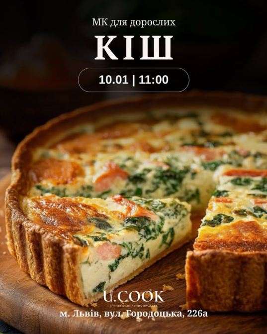 Разом приготуємо кіш - ніжний, ароматний і по-справжньому смачний пиріг. Процес, який заспокоює, аромат випічки на всю студію і результат, яким хочеться ділитися.