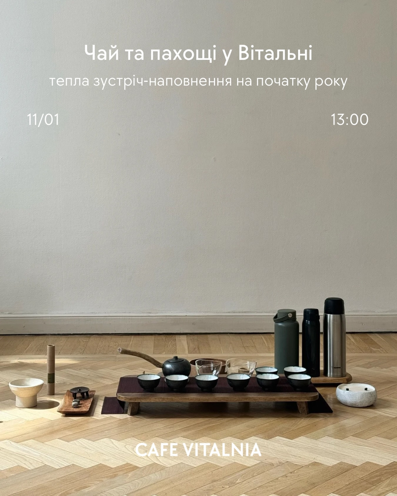 "Під час чаювання я звертаю увагу на смак, техніку, естетику та на внутрішній досвід проживання чайної практики, зв'язок з тілом, розуміння себе. Я завжди ретельно обираю чай для зустрічей. Цього разу ми будемо пити відбірний, винятково ароматний улун".