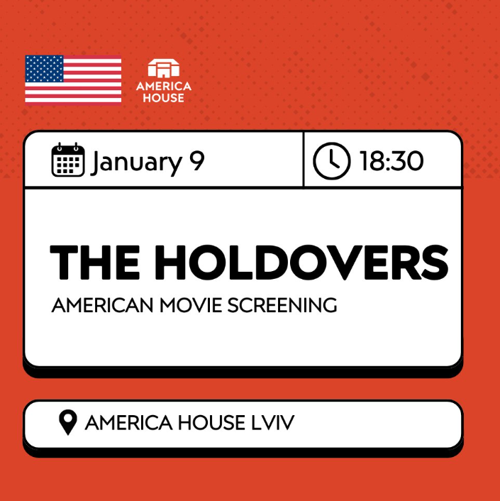 Дивимось "The Holdovers" англійською мовою в America House Lviv. Після перегляду — обговорення з Ольгою Райтер.