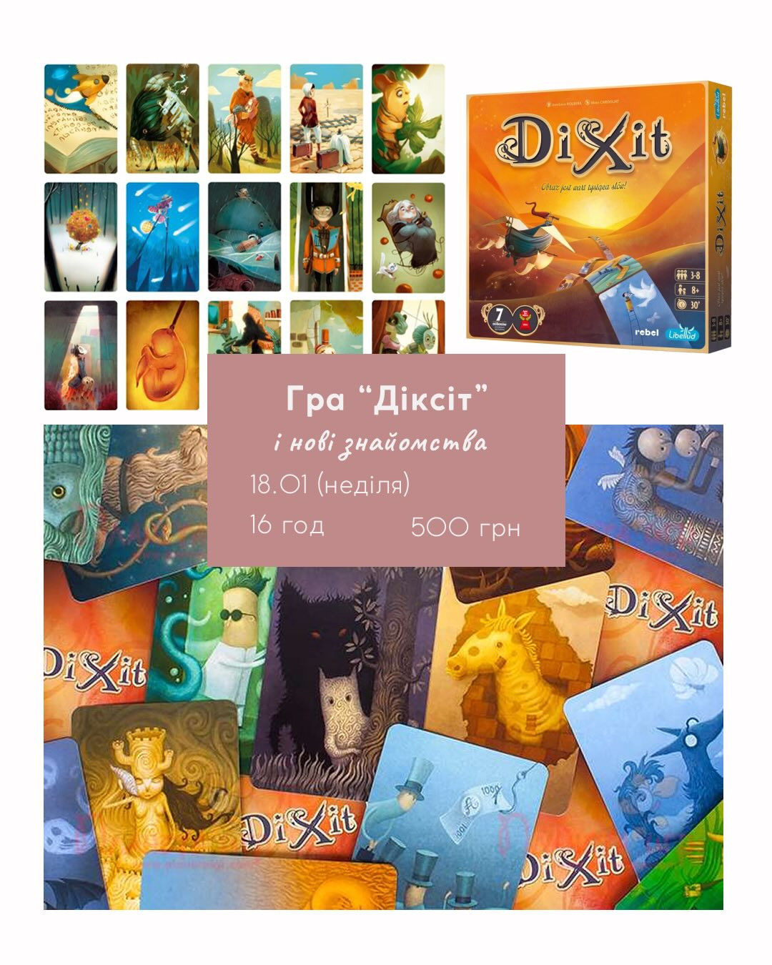 "Діксіт" — це популярна настільна гра на асоціації, яка здобула десятки міжнародних нагород завдяки своїй незвичній механіці та сюрреалістичному оформленню.